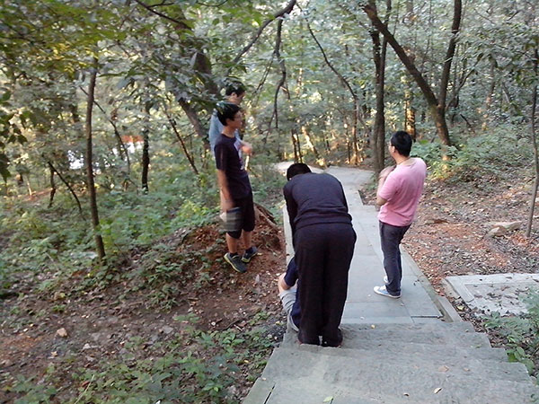 上山的时候有个风景,是一外国 MM 跑山,爬到山顶,又看到她躺在石椅上做仰卧起坐,做完又接着往北高峰的方向跑。