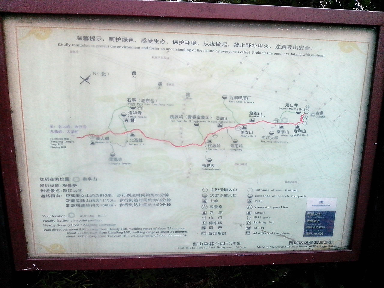 于是这周的运动改成爬山。就是古荡那边的老和山,从公司走过去半小时。老和山很矮,基本上可以认为就是个土坡,爬起来运动量略小,不过在山顶上可以看到西湖。