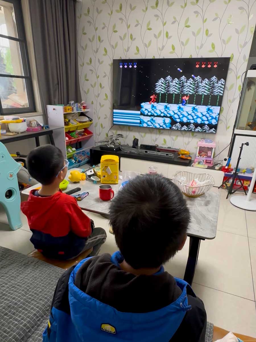 娃俩今天穿的衣服倒是和魂斗罗里两个角色很搭。