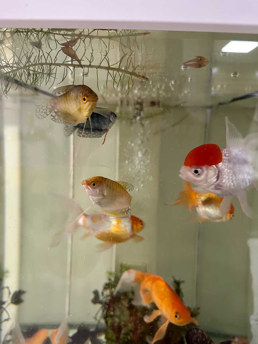 我买了四条曼龙鱼,让鱼缸热闹一些。
