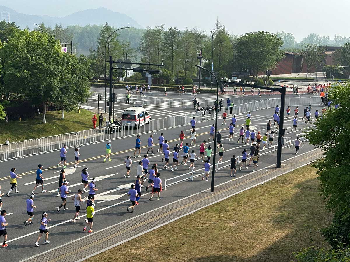 听说摄影师记错时间,很晚才来。再加上今天半马,部分路段封闭,来得就更迟了。